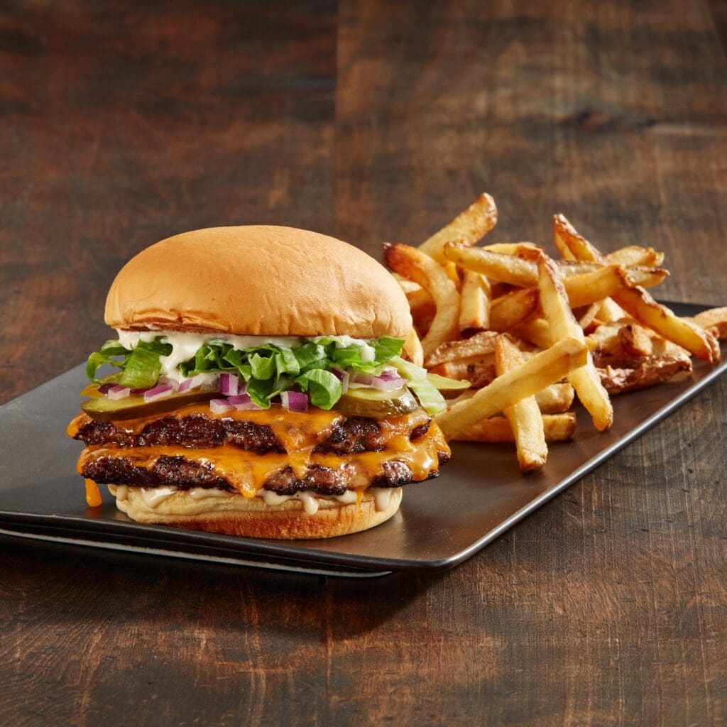 Everything you love from the Meat Me Halfway platter, plus your choice of three smash burgers from our lineup: Eggcellent, Cali Smash, The John Candy, The O.G., The Big WORKS, Shroomin’ Smasher, or Hot N’ Bothered.