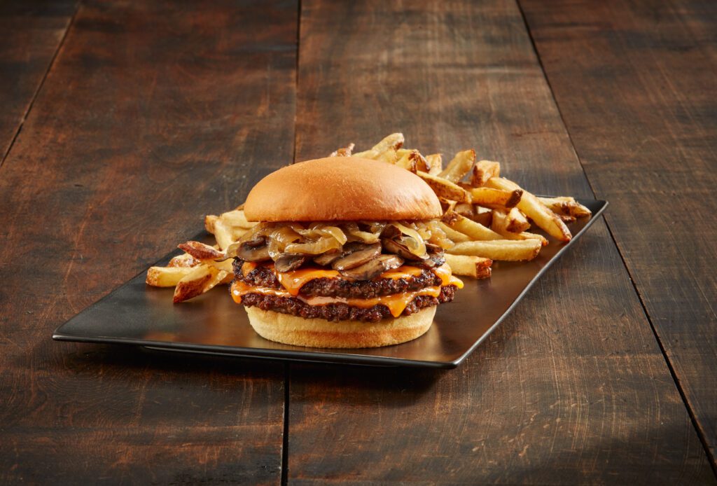 Sautéed mushrooms, caramelized onions, and cheddar. 420-1480 Cals